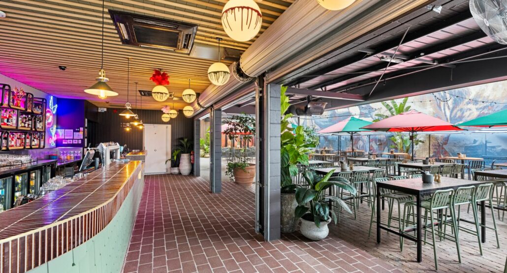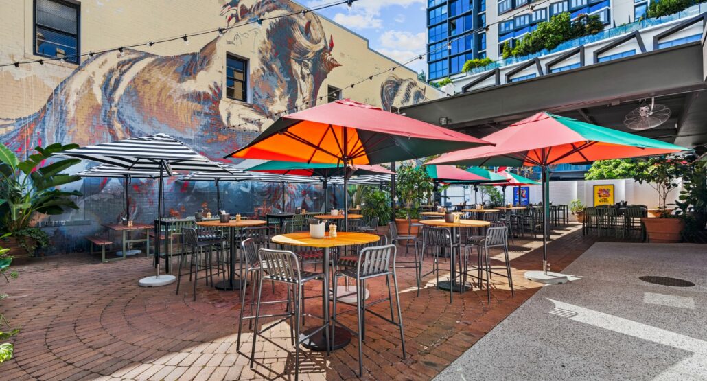Brisbane Proudest pub houses one of Brisbane’s best beer gardens. Flanked by two epic murals by local artist Banjo Bonfire and world renowned street artist Kaffeine, and complete with a built in, weather proofed stage, this breezey space is perfect larger scale events and celebrations. The space is mainly cocktail style with access to 2 TVs, AV, microphone and stage.
