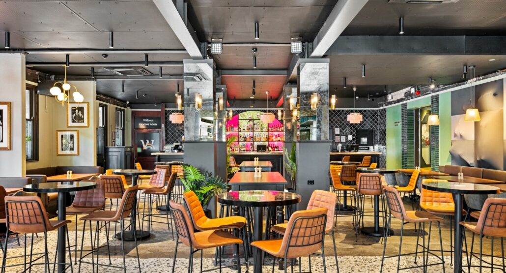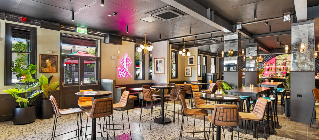 Step into an eclectic wonderland upstairs at The Wickham. This private space has been lovingly restored, with odes to the venues colourful history, plush booth seating and glamourous furnishings throughout. This space type is mainly cocktail style, with AV,1 TV, projector and microphone available.